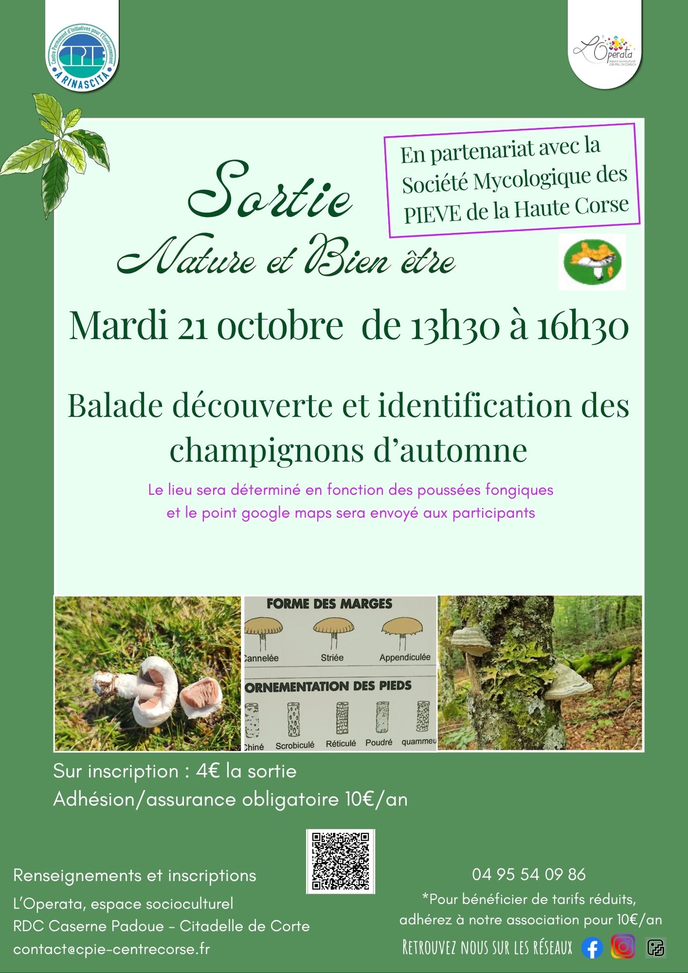 Inscription au 04 95 61 03 43 ou directement sur place, au rez-de-chaussée de la caserne Padoue face au musée entre 8h30 et 12h, 13h et 16h30, ou par mail : contact@cpie-centrecorse.fr