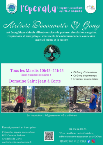Rendez vous tous les mardis de 10h45 à 11h45 au Domaine Saint-Jean à Corte pour des ateliers de Qi Gong.