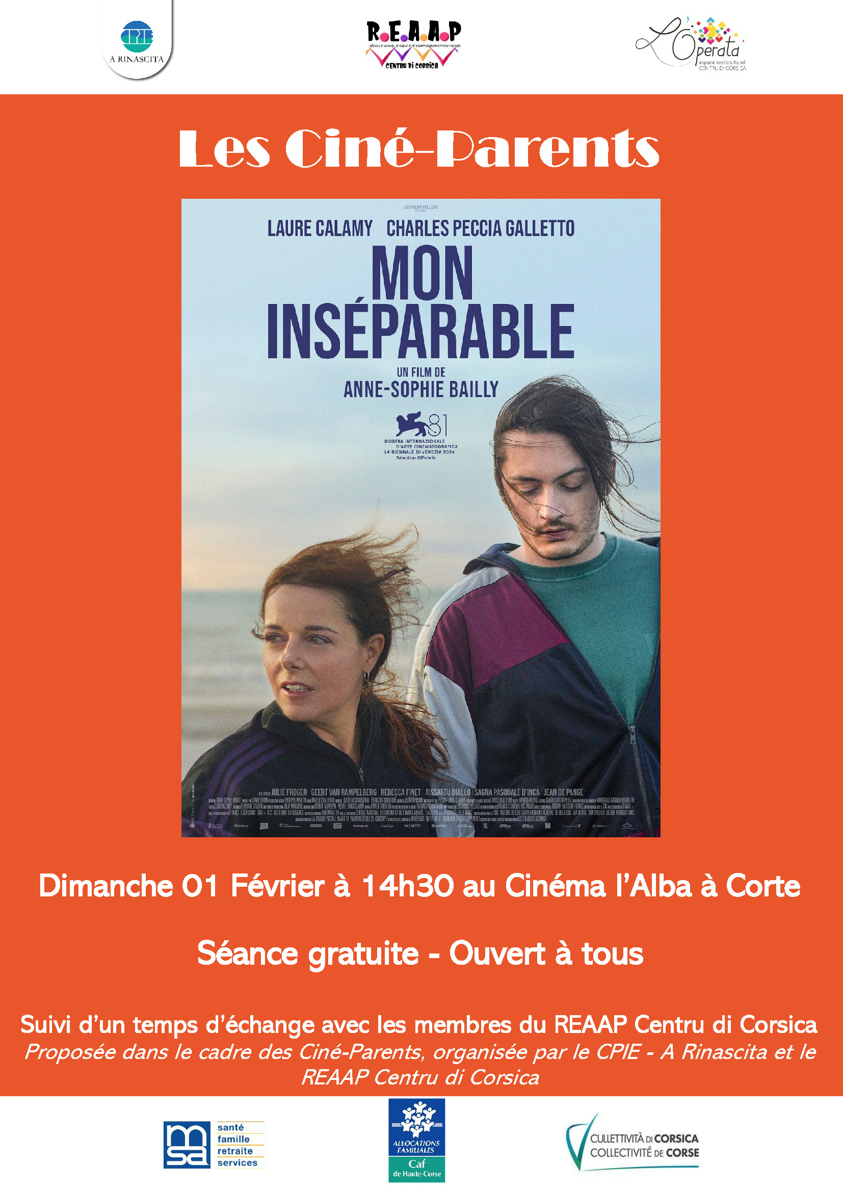 Le CPIE A Rinascita et le REAAP Centru di Corsica ont le plaisir de vous proposer de venir assister dimanche prochain 1er février à 14h30, au cinéma l'Alba de Corte, à la projection du film "Mon inséparable" de Anne-Sophie BAILLY avec Laure CALAMY et Charles PECCIA GALLETTO.