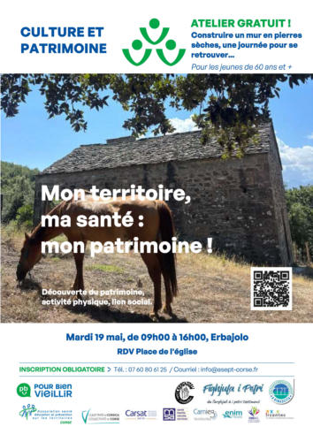 L’ASEPT Corse, en partenariat avec CPIE Corte Centre Corse – A Rinascita, Fighjula i Petri et San Cristofalu Erbaghjolu, organise une journée « restauration d’un mur en pierres sèches à Erbajolo le mardi 19 mai (de 09h00 à 16h00)].
