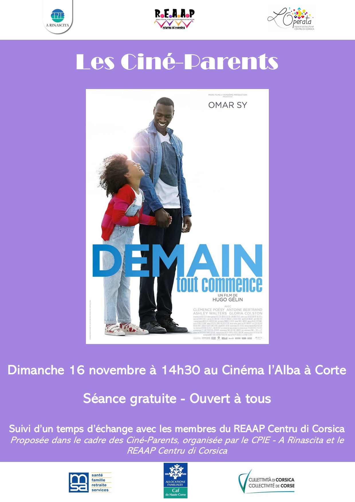 Dans le cadre du projet Famille de l'Operata et du REAAP Centru di Corsica, pour la 3ème édition des Ciné-Parents, projection du film "Demain tout commence" au Cinéma l'Alba à Corte.